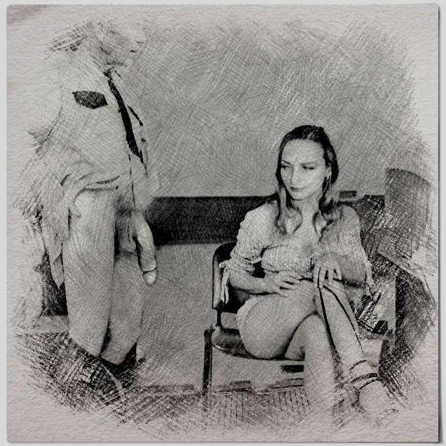 Рабочий день закончился, огромное здание опустело. Стало тихо. Маринка курила в приоткрытое окно кабинета. Мысли же были далеко — там, где муж привычно читал свои бесконечные нотации. «Опять начнётся… то не так, это, бля не эдак, снова пила сука тупая», — промелькнуло в голове. Она бросила последний взгляд на городской пейзаж за окном, затянулась в последний раз, затушила сигарету. «Ещё одну на посошок, — подумала она, доставая из шкафа граненую рюмку. — Всего одну, и домой». Жидкость обожгла горло, на мгновение притупив тревожные мысли. Алкоголь привычно затуманил сознание, делая проблемы чуть менее острыми. Сунув в сумку айфон, вышла из кабинета. Стук каблуков эхом отражался от холодных стен коридора, нарушая вечернюю тишину опустевшего офиса. Маринка шла неторопливо, словно каждое движение давалось ей с трудом. Мерцание люминесцентных ламп создавало причудливую игру света и тени на её лице, подчёркивая усталость и опустошённость. Она вышла в вестибюль с турникетом и стеклянной будкой охраны. У входной двери её поджидал Альберт — охранник, которого она знала уже не первый год. Это был костлявый мужчина с морщинистым лицом и обширными залысинами, красноречиво выдававшими его возраст. Ему было далеко за пятьдесят лет большую часть из которых он провел в родном селе участковым, пока на пенсии не перебрался в город. Секьюрити, как она его иронично называла. — Опять задерживаетесь, Марина? — участливо спросил он, приближаясь к ней. — Да так, работа… — уклончиво ответила она устало. Альберт понимающе кивнул, будто читал её мысли. В его взгляде промелькнуло что-то иное — плотоядное, жадное, но он быстро спрятал это чувство за привычной маской равнодушия охранника. Маринка, знала этот взгляд — взгляд мужчины, который слишком долго был лишён женского внимания. Альберт подошел к турникету его лицо расплылось в заискивающей улыбке, обнажив крепкие, пожелтевшие от табака зубы. — Марина может зайдите ко мне, чайку попьём, поболтаем? — проворковал он, разводя руками. Его голос стал приторным, почти масленым, слезящиеся глаза угодливо блестели. — Да ну что ты, Альберт, мне домой пора, — попыталась она отказаться, но он уже открыл дверь своей дежурки, приглашая жестом внутрь. — Ну куда вы так торопитесь? — продолжал он, наступая. — У меня и печеньки есть, и чай свежий. Посидим, по-дружески. Маринке нескладный и косноязычный Альберт не нравился, она прекрасно видела его плотоядный взгляд и понимала истинные намерения этого примитивного, деревенского мужика. Однако внимание мужчин, даже такое неуклюжее и смешное, как у Альберта, всё равно доставляло ей определённое удовольствие все-таки давно уже не девочка, а взрослая дама под сорок. Иногда она, развлекаясь, даже кокетничала с ним, поскольку ее забавляли его неуклюжие комплименты, неловкие знаки внимания и то, как он старается придвинуться поближе, когда они случайно пересекаются в коридоре, и как его глаза невольно опускаются к её груди, когда он думает, что она не замечает. Она, конечно, все замечала. Она знала, как на нее смотрят мужики. Невысокая, но удивительно стройная, с горделивой осанкой, она притягивала взгляды мужчин. Она замечала, как они украдкой следят за ней, как они раздевают ее глазами каждый раз, когда она проходит мимо. Её высокая грудь и точёные ножки, словно созданные для реклам