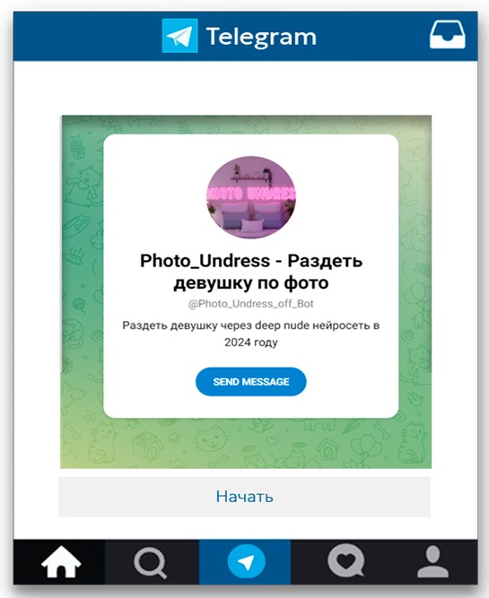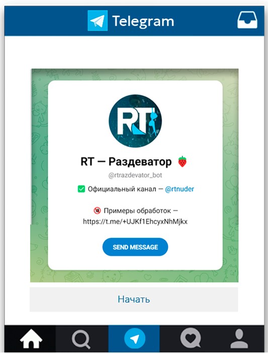 Кратко: Один из старейших ботов для раздевания девушек в Telegram, всё ещё востребован благодаря качеству обработки.
